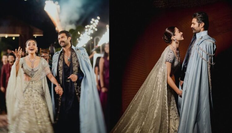 लग्नानंतरचे फोटो रश्मिका मंदान्ना आणि विजय देवराकोंडा यांनी त्यांच्या संगीत कार्यक्रमातील छायाचित्रे शेअर केली आहेत, जिथे या जोडप्याच्या लूकने सर्वांचे लक्ष वेधून घेतले आहे. एकीकडे रश्मिकाने या खास दिवसासाठी शरारा सेट परिधान करून शो चोरला. तथापि, तिचा पोशाख शरारापेक्षा लेहेंग्यासारखा दिसतो, कारण अभिनेत्रीने दुपट्टा वेगळ्या पद्धतीने स्टाईल केला आहे.