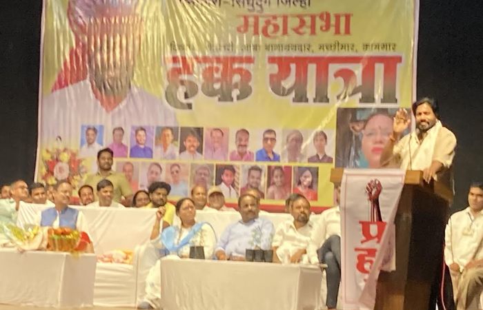 कोकणी माणूस गरीब आहे त्याला गरीब ठेवायचे षडयंत्र रचले जात आहे. कोकणी माणसाशिवाय मुंबई नाही. मुंबईत तुमचे राज्य पाहिजे. पण या लोकांनी कोकणी माणसाला गरीब ठेवले कारण भांडवलदारांना कमी पगारात मजूर मिळाला पाहिजे. या मुंबई-गोवा महामार्गाने सगळी सरकारं पाहिली मात्र महामार्ग काही पूर्ण होत नाही. रस्त्याचे काम रखडवून तुमच्या जमिनीचे भाव पाडायचे आणि कमी भावात जमिनी खरेदी करायच्या असा हा डाव आहे. तेव्हा पुढची पाच-दहा वर्ष तुमच्या जमिनी विकू नका मग पुढचा काळ आपलाच असल्याचा विश्वास बच्चू कडू यांनी व्यक्त केला. पुढे बच्चू कडू म्हणाले की, अर्थसंकल्पाच्या ५ टक्के निधी हा दिव्यांगावर खर्च करायचा असतो. त्याहिशोबाने ३५ हजार कोटी रूपये दिव्यांगावर खर्च केले पाहिजेत पण सरकार १४ हजार कोटी रुपयेच खर्च करते. या विरोधातही आपल्याला लढत रहायचे आहे, असे बच्चू कडू म्हणाले.