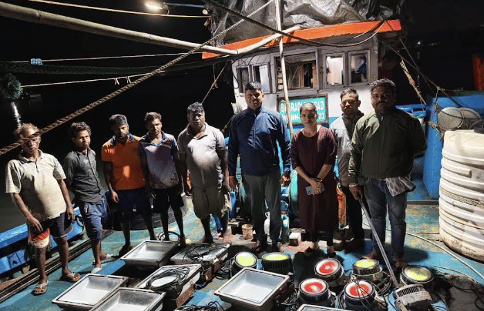 मिरकरवाडा ते गणपतीपुळे दरम्यान नियमित सागरी गस्तीदरम्यान मत्स्यव्यवसाय विभागाने एलईडी दिवे लावून मासेमारी करणाऱ्या नौकेला सहाय्यक मत्स्य व्यवसाय आयुक्त कार्यालयाच्या पथकाने पकडले.