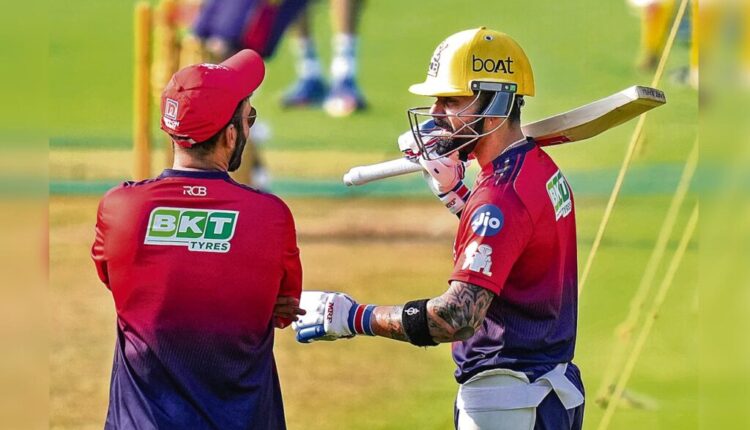आरसीबीचा विराट कोहली संघाचा मार्गदर्शक दिनेश कार्तिकशी संवाद साधताना