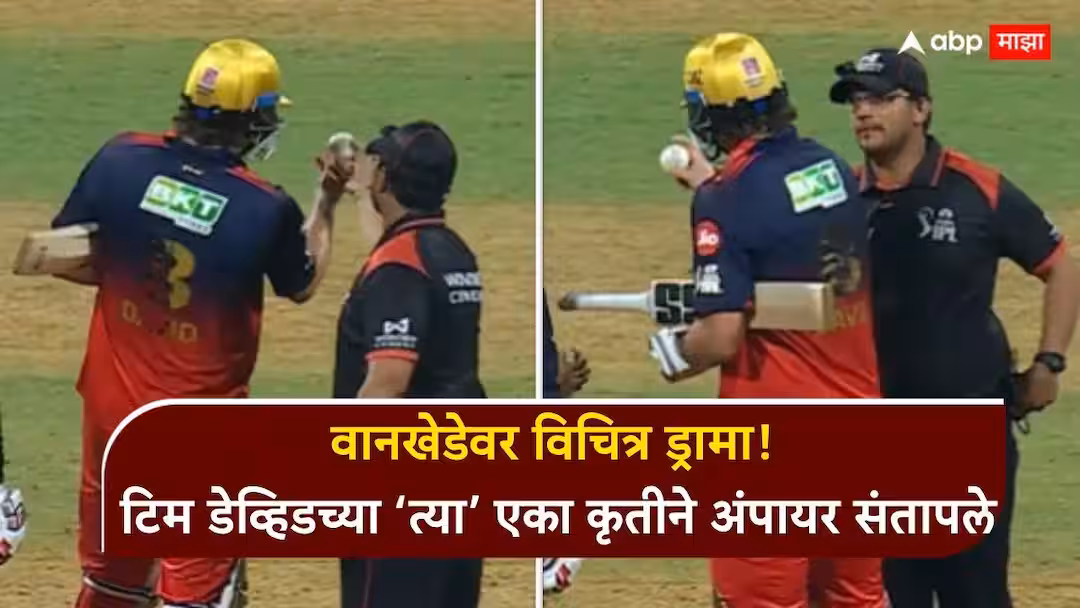 ही घटना आरसीबीच्या डावातील 18व्या षटकात घडली. हार्दिक पांड्या यांच्या चेंडूवर टिम डेव्हिडने मोठा षटकार ठोकला. इतका जोरदार फटका होता की चेंडूचा आकारच बदलला आणि तो ओलाही झाला. त्यामुळे अंपायरांना चेंडू बदलण्याचा निर्णय घ्यावा लागला. नवीन चेंडूंचा बॉक्स मैदानावर आल्यानंतर टिम डेव्हिडने एक चेंडू उचलला आणि त्याच्याशी खेळू लागला. अंपायर वारंवार चेंडू मागत होते, पण टिम डेव्हिड मस्ती करत तो परत देत नव्हता. त्यामुळे अंपायर थोडे चिडलेले दिसले. काही वेळाने मात्र टिम डेव्हिडने चेंडू परत केला आणि वातावरण पुन्हा हलकंफुलकं झालं. या सगळ्या प्रकारात रोहित शर्मा टिम डेव्हिडसोबत हसत-खेळत मजा घेताना दिसले.