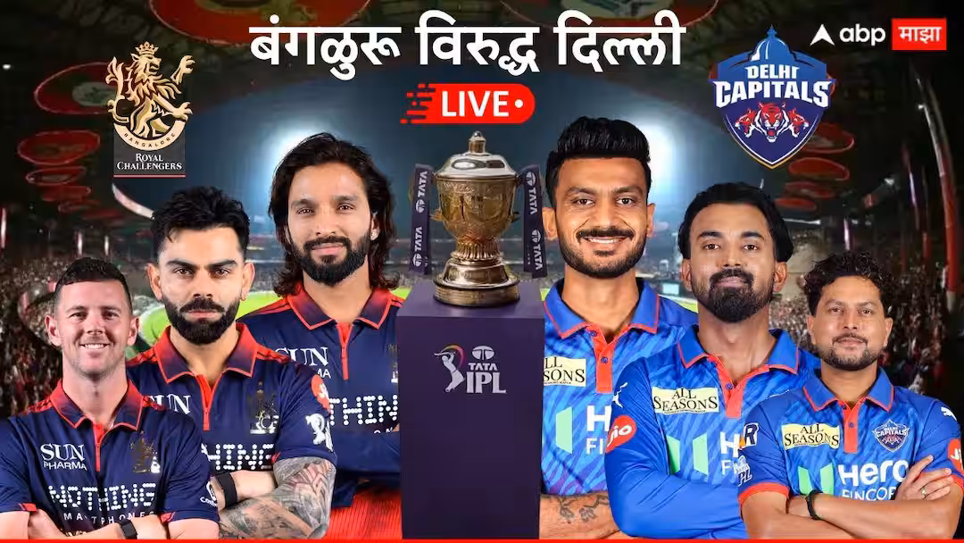 रॉयल चॅलेंजर्स बेंगळुरू विरुद्ध दिल्ली कॅपिटल्स लाइव्ह अपडेट मराठीत: आयपीएलच्या सुरू असलेल्या हंगामातील 26वा सामना रॉयल चॅलेंजर्स बंगळुरु आणि दिल्ली कॅपिटल्स यांच्यात बंगळुरुच्या एम. चिन्नास्वामी स्टेडियम येथे रंगणार आहे. गतविजेते आरसीबी या हंगामात जबरदस्त फॉर्ममध्ये आहेत. त्यांनी आतापर्यंत 5 सामने खेळले असून त्यापैकी 4 मध्ये विजय मिळवला आहे, तर फक्त एका सामन्यात पराभव पत्करावा लागला आहे. दुसरीकडे, दिल्ली कॅपिटल्सचा प्रवास थोडासा चढ-उताराचा राहिला आहे. त्यांनी 4 पैकी 2 सामने जिंकले आहेत.