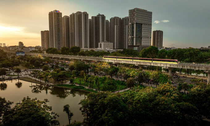 व्हिएतनाममधील हनोई येथे मेट्रो ट्रेन धावते. Nguyen Van Anh द्वारे फोटो |