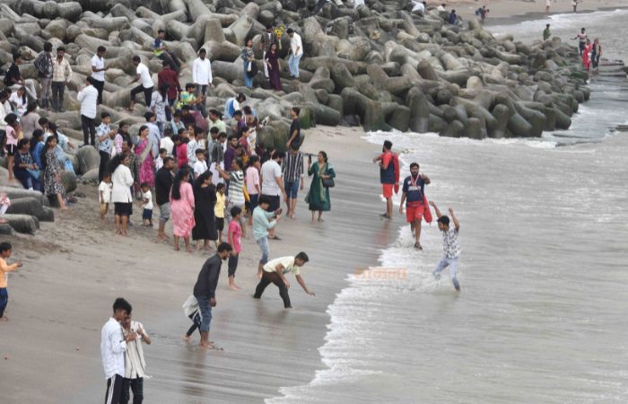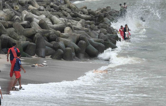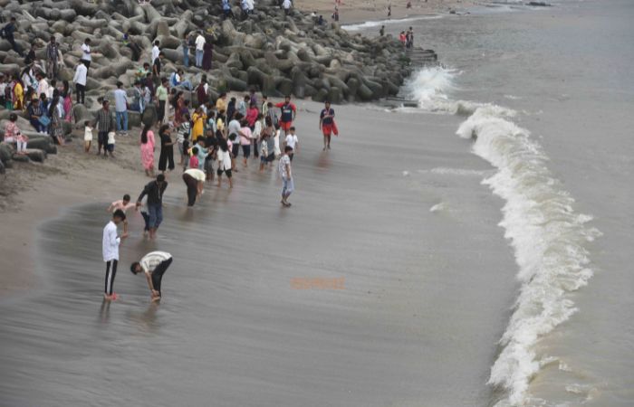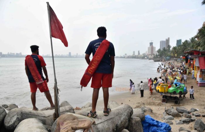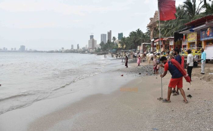Photo – ‘मोंथा’ चक्रीवादळाचा प्रभाव, मुंबईत दादर समुद्रकिनारी धोक्याचा लाल बावटा