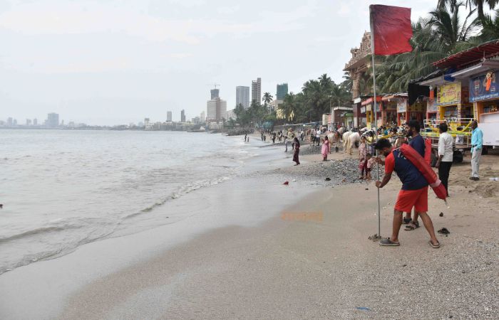 Photo – ‘मोंथा’ चक्रीवादळाचा प्रभाव, मुंबईत दादर समुद्रकिनारी धोक्याचा लाल बावटा