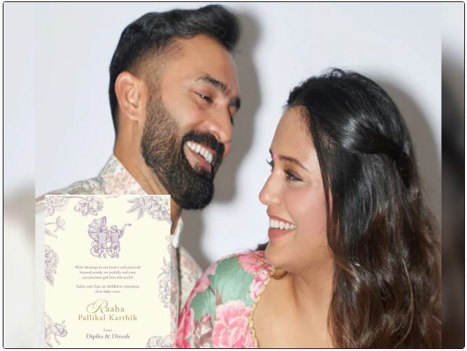 नवी दिल्ली : भारतीय क्रिकेट संघाचा माजी खेळाडू दिनेश कार्तिक आणि आंतरराष्ट्रीय स्क्वॉश स्टार दीपिका पल्लीकल यांच्या घरी आनंदाने दार ठोठावले आहे. या जोडप्याने आपल्या मुलीच्या 'राहा पल्लीकल कार्तिक'च्या जन्माची गोड बातमी सोशल मीडियावर शेअर केली आहे.