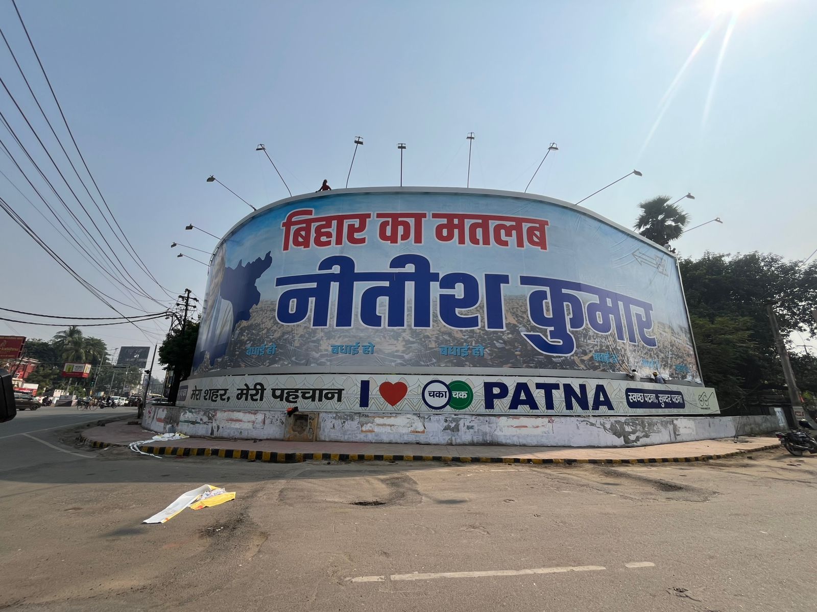 पाटणा शहराच्या मध्यभागी नितीश कुमार यांचे मोठे पोस्टर लावण्यात आले आहे. त्यात लिहिले आहे- बिहार म्हणजे नितीश कुमार.