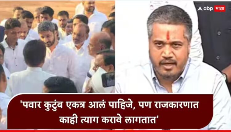 अजितदादांच्यावेळी पवार विरुद्ध पवार झालं आहे, लोकसभेलाही पवार विरुद्ध पवार झालेलेच आहे. उद्या पुढे जाऊन पवार विरुद्ध पवार होण्याची शक्यता नाकारता येणार नाही. लोकांची इच्छा आहे, लोकांचं मत आहे, जी शेवटची दादांची इच्छा होती, पवार परिवार एकत्र आला पाहिजे. हे कितीही खरं असलं तरी राजकीय दृष्टीकोनातून चांगल्या गोष्टी होण्यासाठी काही कठोर निर्णय घ्यावे लागतात,काही गोष्टींचा त्याग करावा लागतो. उद्या जाऊन परिवाराला एकत्र यायचं झालं तर आम्ही विरोधात आहोत. पण सत्तेतून काही लोकांना पक्षाला बाहेर येणे, आमदारांचा आणि कार्यकर्त्यांचा विचार करता तो तसा सोपा निर्णय नाही, असे रोहित पवार यांनी म्हटले.
