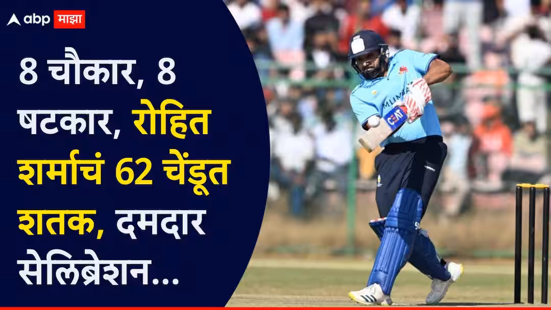 रोहित शर्मा बातम्या: रोहित शर्मा जेव्हा क्रीजवर उतरतो, तेव्हा समोरच्या गोलंदाजांची अक्षरशः धडकी भरते आणि विजय हजारे ट्रॉफीतील पहिल्याच सामन्यात त्याने हे पुन्हा एकदा सिद्ध केलं. आधी सिक्कीमविरुद्ध खेळताना रोहितने अवघ्या 27 चेंडूमध्ये अर्धशतक झळकावलं, तर फक्त 62 चेंडूत शतक ठोकले. त्याने आठ षटकार आणि आठ चौकारांच्या मदतीने आपले शतक पूर्ण केले. हे लक्षात घेण्यासारखे आहे की रोहित शर्माने 7 वर्षांनी विजय हजारे ट्रॉफीमध्ये शतक झळकावले आहे. तो 7 वर्षांनी या स्पर्धेत खेळत आहे.