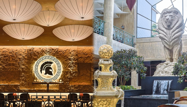 लहान डिझाइन संकेत थीम मजबूत करतात. प्रवेशद्वारावर एक ग्लॅडिएटर आकृती टोन सेट करते. पौराणिक प्राणी कारंज्याजवळ बसतात. बारटेंडर्स एका उंच बारवर काम करतात जे स्टेजसारखे वाटते. या सर्व नाटकासाठी जागा कार्यरत राहते. गल्ली रुंद राहतात, प्रकाश संतुलित राहतो आणि बसण्याची व्यवस्था सुरळीत होते.