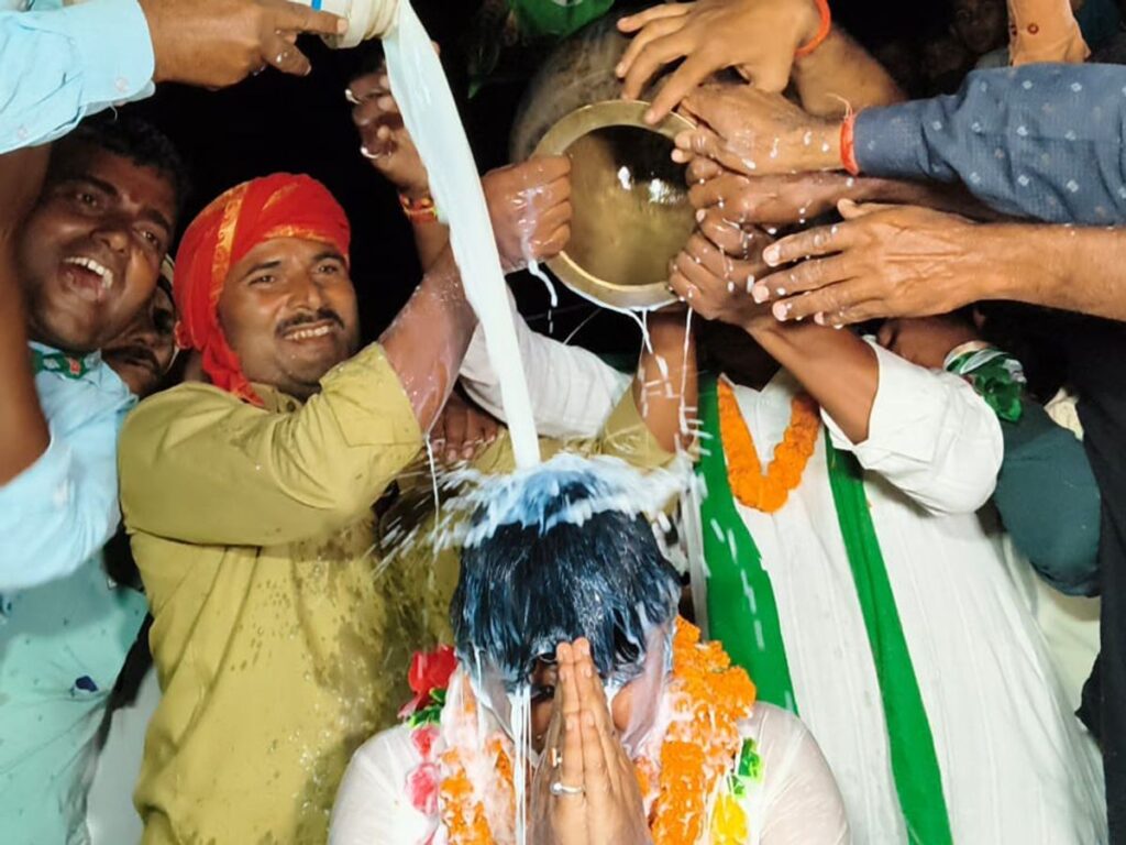 'रोम पोपचा, नरपतगंज गोपांचा': आरजेडीचे उमेदवार मनीष यादव यांना एक क्विंटल दुधाचा अनोखा आशीर्वाद मिळाला.