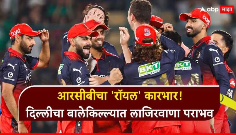 आरसीबीचा ‘रॉयल’ कारभार! 13.3 ओव्हर शिल्लक ठेवून दिल्लीचा धुव्वा; विराट कोहलीच्या विक्रमी बॅटने