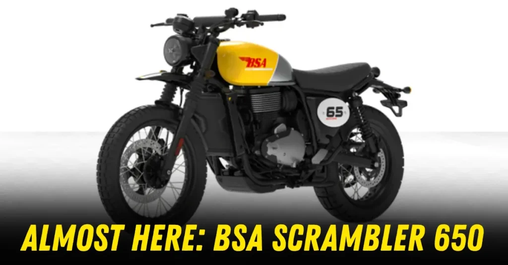 जावा, येझदी आणि BSA सारख्या मोटरसायकल ब्रँडच्या पुनरुज्जीवनामागे महिंद्राच्या मालकीची क्लासिक लीजेंड्स आहे. क्लासिक लीजेंड्स आता नवीन BSA मोटरसायकल बाजारात आणण्याची योजना करत आहे. ते स्क्रॅम्बलर मोटरसायकलवर काम करत आहेत आणि क्लासिक लिजेंड्सचे सह-संस्थापक अनुपम थरेजा यांनी माध्यमांशी संवाद साधताना तसे संकेत दिले होते. असे दिसते की आगामी मोटरसायकल BSA Scrambler 650 असणार आहे आणि अधिकृत लॉन्च 23 एप्रिल 2026 रोजी होणार आहे.