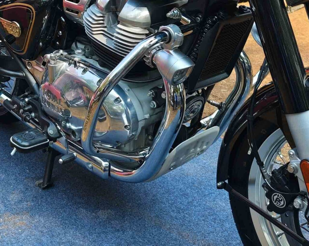 बाईकची टूरिंग किंवा नियमित सिटी राइड दोन्ही वैशिष्ट्ये परिस्थितींमध्ये खूप महत्त्वाची आहेत. बुलेट 650 वर दर्शविलेले क्रोम-फिनिश इंजिन गार्ड बाईक घसरल्यास सुरक्षित ठेवण्यास मदत करते. तसेच, सहाय्यक दिवे बसविण्यासाठी इंजिन गार्ड देखील आवश्यक मानले जाते.