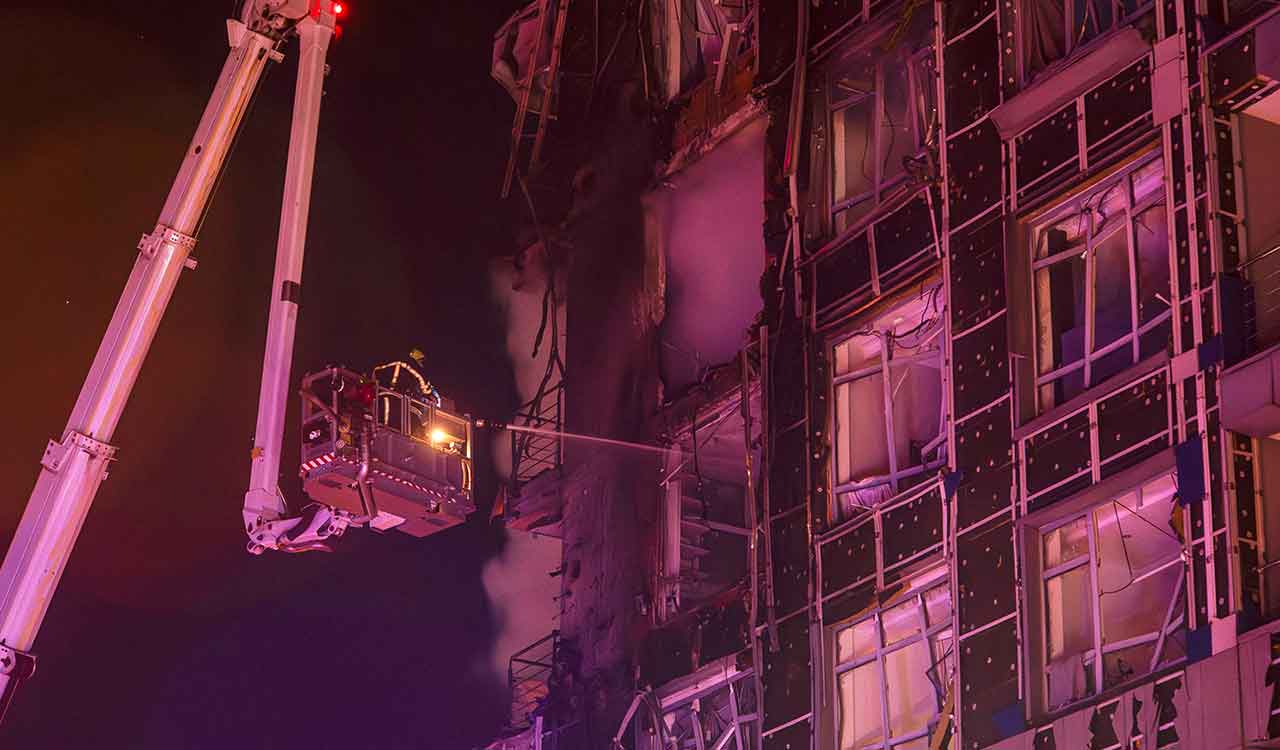 टेलीग्रामवर पोस्ट केलेल्या व्हिडिओ फुटेजमध्ये निप्रोव्स्कीमधील नऊ मजली इमारतीच्या अनेक मजल्यांवर मोठी आग पसरली आहे. किमान चार जण जखमी झाले, असे कीव शहर प्रशासनाचे प्रमुख, टायमोर ताकाचेन्को यांनी सांगितले.