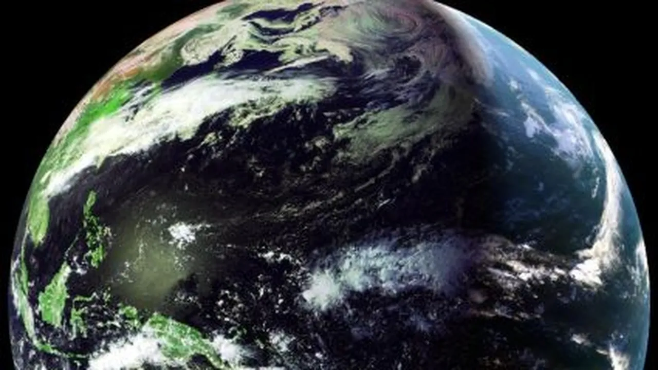 या दृश्यात, पॅसिफिक महासागर आणि आग्नेय आशियावर केंद्रीत, 'इलेक्ट्रो-एल' उपग्रहाने फिलीपीन द्वीपसमूहाचा गडद हिरवा आणि ऑस्ट्रेलियाचा गंज-लाल आतील भाग तसेच खुल्या महासागरावरील प्रचंड वादळ प्रणाली ताब्यात घेतली.