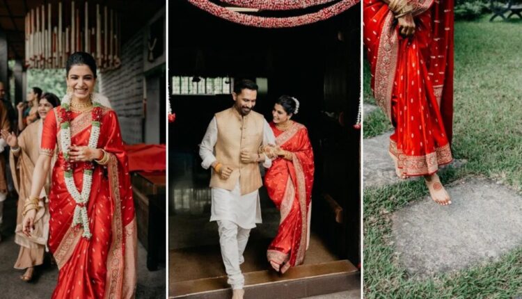 नवी दिल्ली: 1 डिसेंबर रोजी कोईम्बतूरच्या लिंगा भैरवी मंदिरात एका जिव्हाळ्याच्या समारंभात चित्रपट निर्माता राज निदिमोरूशी लग्न करणारी समंथा रुथ प्रभू हिने जाता-जाता लाइमलाइट चोरली आहे. यावेळी, ती तिच्या हाताने विणलेली लाल बनारसी लग्नाची साडी आहे ज्याने मथळे मिळवले आहेत. साडी एका विणकराने शुद्ध कटान सॅटिन सिल्कमध्ये तयार केली आहे. हा देखावा भारताच्या वस्त्रोद्योग वारशाबद्दलचा नितांत आदर आणि प्रत्येक धाग्यातून कथा सांगणाऱ्या कारागिरीबद्दलची प्रशंसा दर्शवितो.