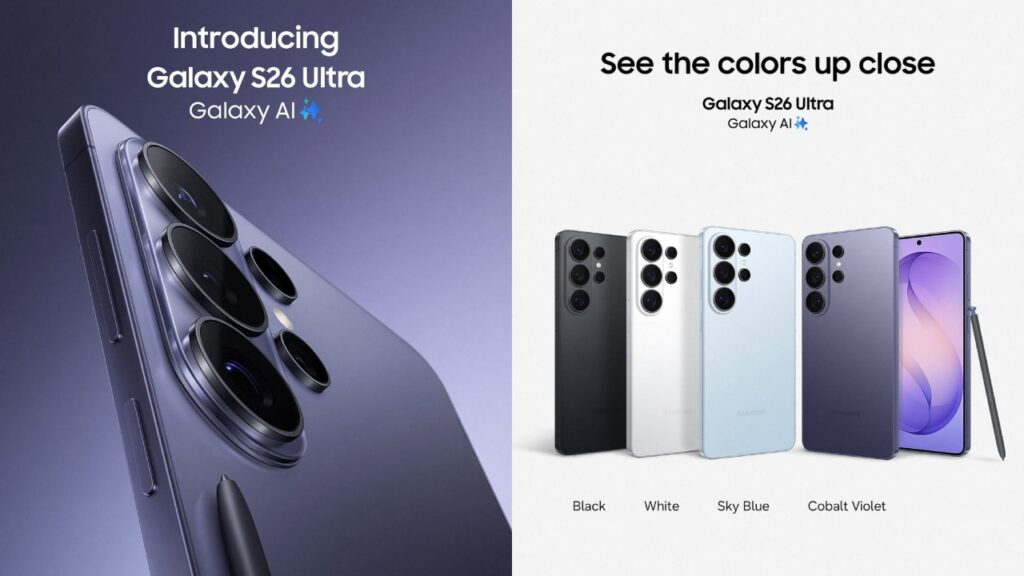 Samsung Galaxy S26 Ultra ची सुरुवातीची किंमत 256GB व्हेरिएंटसाठी ₹ 1,39,999 ठेवण्यात आली आहे. 512GB मॉडेल ₹1,59,999 मध्ये उपलब्ध असेल, तर 1TB व्हेरियंटची किंमत ₹1,89,999 निश्चित करण्यात आली आहे. 25 फेब्रुवारीपासून प्री-ऑर्डर सुरू झाल्या आहेत. हा स्मार्टफोन कोबाल्ट व्हायोलेट, व्हाइट, ब्लॅक आणि स्काय ब्लू कलरमध्ये उपलब्ध असेल. तर पिंक गोल्ड आणि सिल्व्हर शॅडो रंग केवळ सॅमसंगच्या अधिकृत वेबसाइटवर खरेदी करणाऱ्यांसाठीच ठेवण्यात आले आहेत. खरेदीदार सॅमसंग केअर+ ची देखील निवड करू शकतात, ज्यामध्ये अपघाती नुकसान दुरुस्ती, विस्तारित वॉरंटी आणि भारत आणि परदेशात तज्ञांचे समर्थन समाविष्ट आहे.