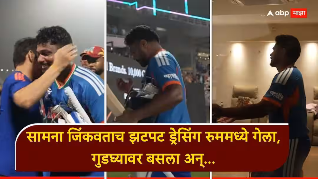 सामना जिंकल्यानंतर ड्रेसिंग रूममध्ये परतल्यावरही संजूचे भावनिक दृश्य पाहायला मिळाले. ड्रेसिंग रूममध्ये शिरताच तो पुन्हा गुडघ्यावर बसला आणि त्याने देवाचे आभार मानले. हा क्षण कॅमेऱ्यात कैद झाला असून, चाहत्यांचे डोळे पाणावणारा हा व्हिडिओ सध्या सोशल मीडियावर तुफान व्हायरल होत आहे.