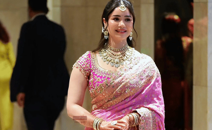 साराने तिच्या भावाच्या लग्नात गुलाबी रंगाची सुंदर साडी नेसली होती. केसांची साधीशी हेअर स्टाईल व गळ्यात राजेशाही हार घातला होता. तिचा हा लूक अनेकांना आवडला आहे.