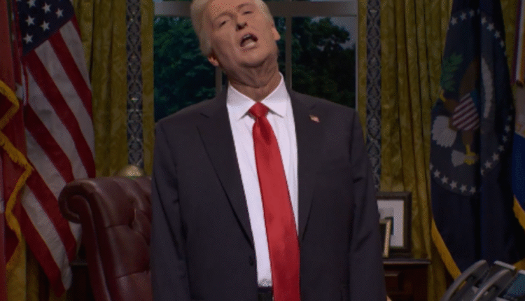 “सॅटर्डे नाईट लाइव्ह” ने आपला नवीनतम भाग ओव्हल ऑफिसमध्ये ओव्हल ऑफिसमध्ये कोसळल्याबद्दल राष्ट्राध्यक्ष डोनाल्ड ट्रम्प यांच्या प्रतिक्रियेच्या विडंबनासह उघडला. ट्रम्प स्थिर उभे राहून माणूस पडताना पाहिल्यानंतर वास्तविक जीवनातील क्षणाकडे लक्ष वेधले गेले. स्केचमध्ये, अभिनेता जेम्स ऑस्टिन जॉन्सनने ट्रम्पच्या भूमिकेची पुनरावृत्ती केली, मजल्यावरील कर्मचाऱ्यांना मदत करण्यासाठी काहीही न करता विनोदी भाष्य केले.