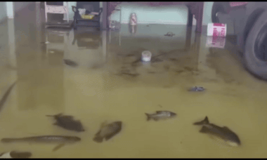 व्हायरल झालेल्या व्हिडिओमध्ये, मासे पूरग्रस्त घरात दाखवले आहेत आणि घरमालक त्यांच्या अनपेक्षित आगमनाचे वर्णन 'आशीर्वाद' म्हणून करतो. घरातून शांतपणे पोहणाऱ्या पोमफ्रेट्सच्या दृश्याने पुराच्या दरम्यान विनोद आणि उबदारपणाचा दुर्मिळ स्पर्श जोडला.