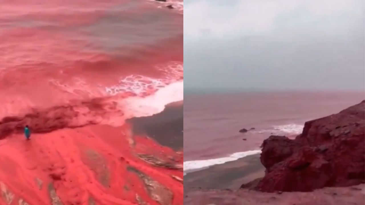 समुद्र रक्तासारखा लाल झाला! होर्मुझ बेटावर दिसले निसर्गाचे अनोखे दृश्य, रंग कसा बदलला? व्हायरल व्हिडिओ पहा