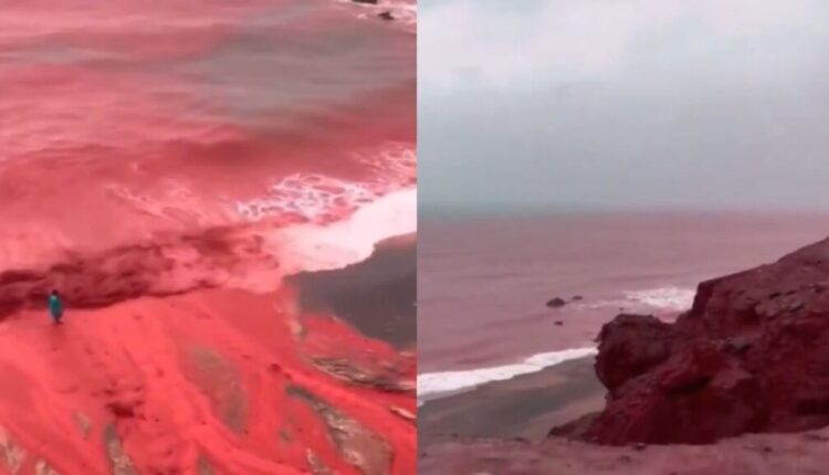 समुद्र रक्तासारखा लाल झाला! होर्मुझ बेटावर दिसले निसर्गाचे अनोखे दृश्य, रंग कसा बदलला? व्हायरल व्हिडिओ पहा