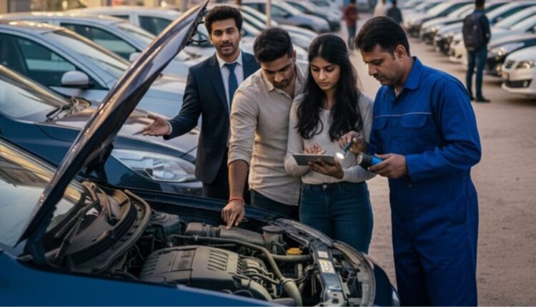 नोंदणी प्रमाणपत्र (RC बुक), विमा पॉलिसी, प्रदूषण नियंत्रण प्रमाणपत्र (PUC) आणि सेवा इतिहास हे तपासण्यासाठी महत्त्वाचे दस्तऐवज आहेत. तसेच, कारवर कोणतेही कर्ज थकीत नाही याची खात्री करा.