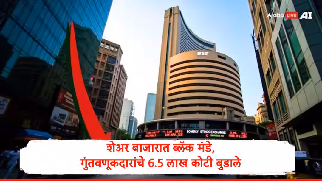 मुंबई : भारतीय शेअर बाजारात 2 मार्चला घसरण पाहायला मिळाली. अमेरिका आणि इराण यांच्यातील वाढत्या तणावामुळं क्रूड ऑईलचे दर वाढले आहेत. यामुळं शेअर बाजारावर परिणाम झाला. सेन्सेक्स प्री ओपनिंग मार्केटमध्ये 2700 अंकांनी कोसळला होता. दुपारपर्यंत बाजारात सुधारणा झाली. यामुळं सेन्सेक्स 1048 अंकांची घसरण झाली आणि सेन्सेक्स 80238.85 अंकांवर बंद झाला. तर, निफ्टी 313 अंकांच्या घसरणीसह 24865.70 अंकांवर बंद झाला. सेन्सेक्सवरील घसरणीमुळं गुंतवणूकदारांचं साडे सहा लाख कोटींची नुकसान झालं आहे.