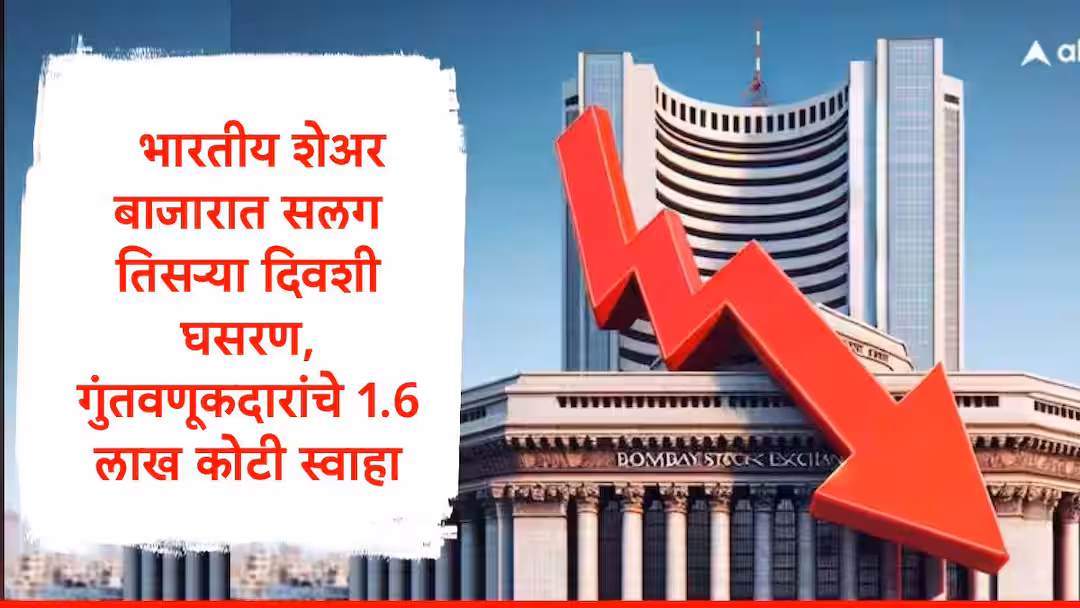 सेन्सेक्स- निफ्टीमध्ये सलग तिसऱ्या दिवशी घसरण, भारतीय गुंतवणूकदारांचे 1.6 लाख कोटी बुडाले