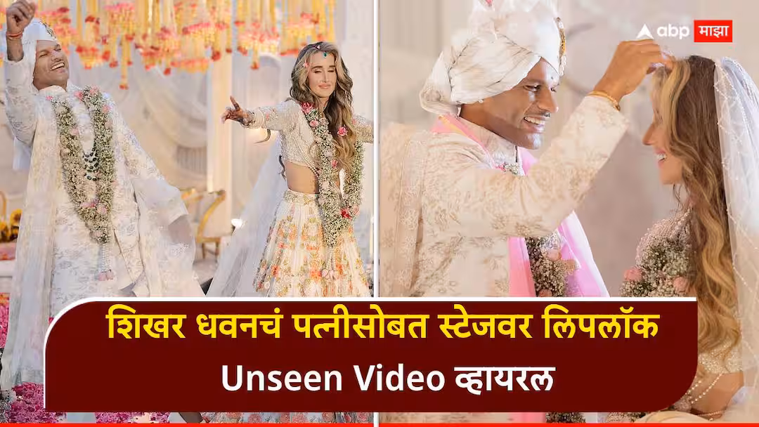 डोक्यावर अक्षता पडल्या, गळ्यात हार घालताच शिखर धवनचं पत्नीसोबत स्टेजवर लिपलॉक, लग्नातील Unseen