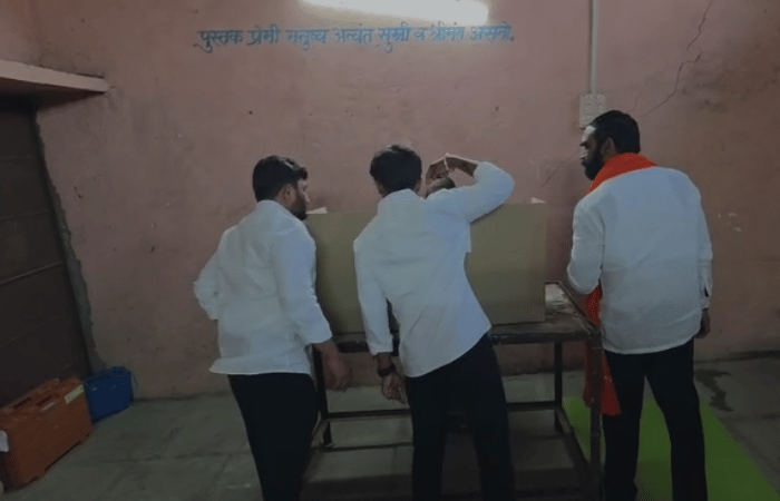 मिंधे गटाचे नाटकी गद्दार आमदार संतोष बांगर यांनी गोपनीयतेचा भंग केला आहे. संतोष बांगर यांनी मतदान केंद्रात अनधिकृत रित्या मोबाईल वापरत मतदान करत असलेल्या एका महिलेला हात वारे करत मतदान करण्याचा इशारा केला. एवढेच नाही तर घोषणाबाजी केल्याचाही प्रकार घडला आहे.