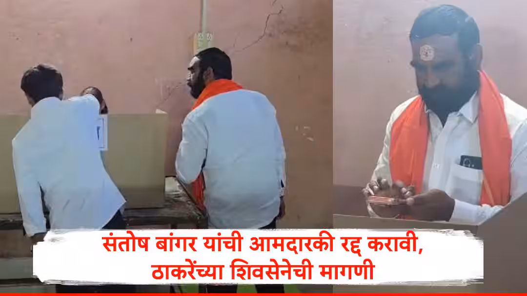 संतोष बांगर यांनी आज मतदान केंद्रामध्ये जात गोपनीयतेचा भंग केला. यावरून उद्धव ठाकरेंच्या शिवसेनेचे जिल्हाप्रमुख संदेश देशमुख यांनी बांगर यांच्यावर जोरदार टीका केली आहे. बांगर यांनी हिंगोली जिल्ह्याचा बिहार करून ठेवला आहे. निवडणूक आयोग जिवंत असेल तर बांगर यांच्यावर कारवाई करावी आणि त्यांची आमदारकी रद्द करावी अशी मागणी ठाकरेंच्या शिवसेनेचे जिल्हाप्रमुख संदेश देशमुख यांनी केली आहे.