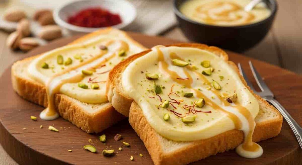 - गार्निश आणि सर्व्हिंग: आता या तयार टोस्टवर काही चिरलेला बदाम आणि पिस्ता घाला. हे त्यांना सुंदर दिसेल आणि चव देखील वाढेल.