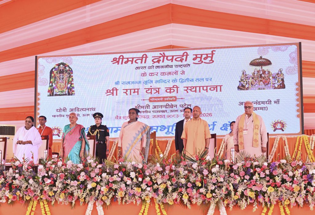 अयोध्येत ‘रामजन्मभूमी’च्या स्थानी साकारण्यात आलेल्या भव्य राम मंदिरात, राष्ट्रपती द्रौपदी मुर्मू यांच्या हस्ते ‘श्रीराम यंत्रा’ची स्थापना करण्यात आली आहे. गुरुवारी गुढीपाडव्याच्या शुभदिनी हा कार्यक्रम अमाप उत्साहात पार पडला. राष्ट्रपती द्रौपदी मुर्मू यांनी वेदमंत्रांच्या घोषात या ‘श्रीराम यंत्रा’ची विधिवत् पूजा केली आणि त्याची स्थापना केली. या कार्यक्रमाला उत्तर प्रदेशचे मुख्यमंत्री योगी आदित्यनाथ यांच्यासह अनेक मान्यवर आणि प्रचंड संख्येने रामभक्त उपस्थित होते. अत्यंत भक्तीमय आणि उत्साही वातावरणात हा कार्यक्रम संपन्न झाला.