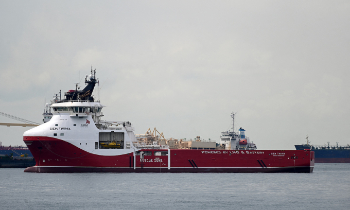 9 मार्च 2022 रोजी सिंगापूरमधील अँकरेजजवळ एलएनजी आणि बॅटरीने चालणारे प्लॅटफॉर्म पुरवठा करणारे जहाज सिएम थिमा दिसत आहे. AFP द्वारे फोटो |