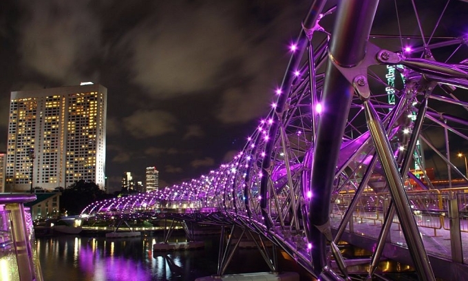 हेलिक्स ब्रिज, सिंगापूरच्या गजबजलेल्या मरीना बे भागात मरीना सेंटर आणि मरीना साउथला जोडणारा पादचारी दुवा, ब्रिटिश मासिक टाइम आउटने जगातील 19 सर्वात सुंदर पुलांच्या यादीत 16 व्या क्रमांकावर आहे.