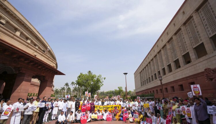 देशात एलपीजी सिलिंडरच्या कथित कमतरतेवरून विरोधकांनी गुरुवारी संसदेत सरकारला घेरले. विरोधी पक्षनेते राहुल गांधी यांनी या मुद्यावर चर्चेची सूचना दिली, तर विरोधी पक्षाच्या खासदारांनी संसदेच्या आवारात सिलिंडर संकटावरून निदर्शने करत सरकारविरुद्ध घोषणाबाजी केली. विरोधी पक्षाच्या सदस्यांनी ‘नरेंद्र गायब, सिलिंडरही गायब’ अशा आशयाच्या घोषणा देत गॅस सिलिंडर टंचाईच्या समस्येवर आवाज उठवला.