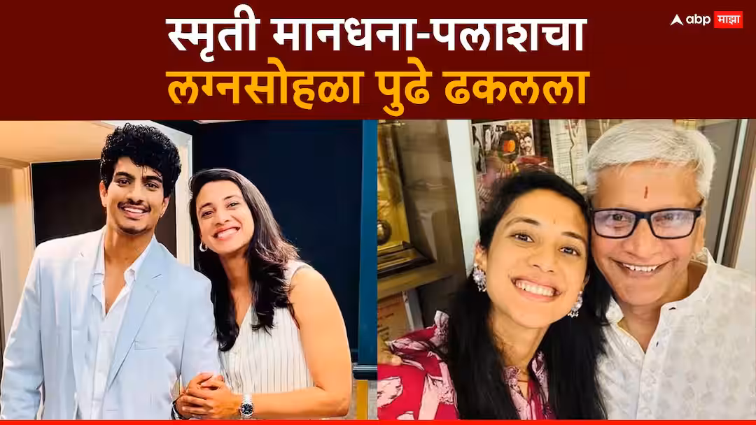 स्मृती मानधना पलाश मुच्छाल लग्नाच्या बातम्या : भारतीय महिला क्रिकेट संघाची उपकर्णधार स्मृती मानधना आणि पलाश मुच्छल यांचा विवाह सोहळा रविवारी सांगलीत पार पडणार होता. मात्र आनंदाच्या या क्षणी अचानक विघ्न आलं आहे. स्मृती मानधनाचे वडील श्री. श्रीनिवास मानधना यांची तब्येत बिघडल्याची माहिती मिळत आहे. अचानक प्रकृती खालावल्याने त्यांना तातडीने उपचारासाठी रुग्णालयात हलवण्यात आलं.