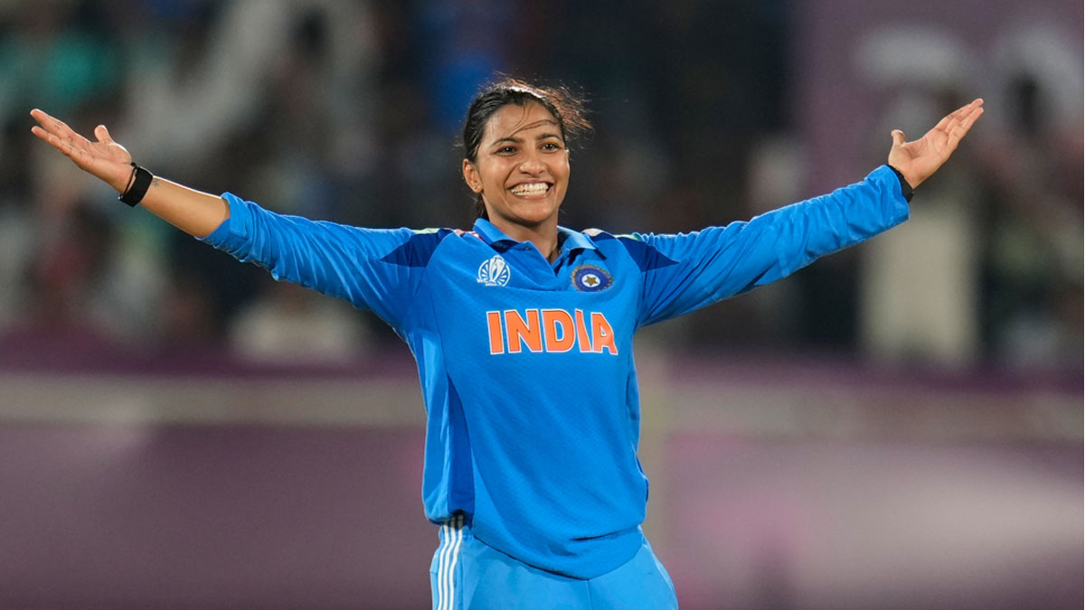 श्री चारानीने 3 विकेट्ससह तिचे स्पेल संपवले, तर स्नेह राणा एक आश्चर्यकारक आहे