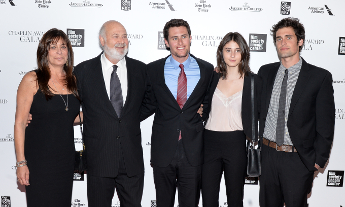 (एल कडून) ऑनोरी रॉब रेनरची पत्नी मिशेल, ते आणि त्यांची मुले जेक रेनर, रोमी रेनर आणि निक रेनर न्यूयॉर्कमधील 28 एप्रिल 2014 रोजी एव्हरी फिशर हॉल येथे 41 व्या वार्षिक चॅप्लिन पुरस्कार कार्यक्रमात. एपी द्वारे फोटो |