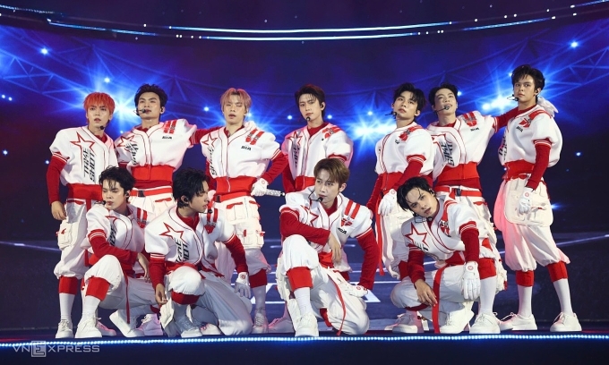 Yeah1 ने स्थापन केलेला बॉय बँड एका संगीत कार्यक्रमात सादर करतो. VnExpress/Tung Quynh द्वारे फोटो