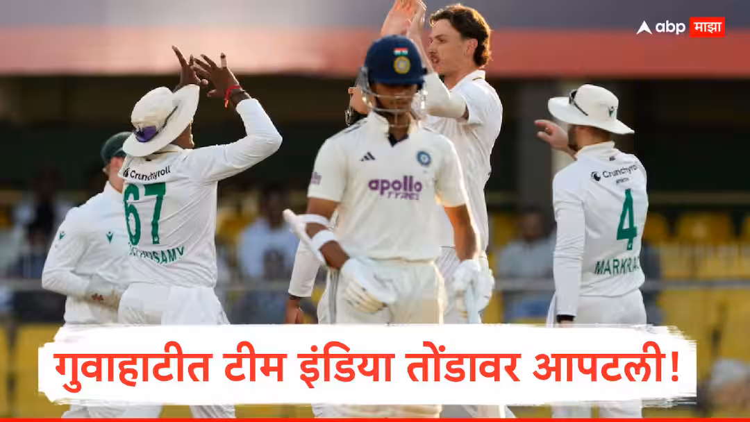 भारतासाठी यशस्वी जैस्वाल आणि के.एल. राहुल याने पहिल्या विकेटसाठी 65 धावांची चांगली भागीदारी केली. पण मधल्या फळीत पुन्हा एकदा निराशा पाहायला मिळाली. भारत 95/1 वरून एका क्षणात 122/7 असा कोसळला, केवळ 27 धावांत तब्बल 6 विकेट्स पडल्या. साई सुदर्शन (15), ध्रुव जुरेल (0), ऋषभ पंत (7), रवींद्र जडेजा (6), नितीश कुमार रेड्डी (10) अपयशी ठरले. मार्को यान्सेननं या डावात 6 विकेट्स घेतल्या. शेवटी वॉशिंग्टन सुंदर (48) आणि कुलदीप यादव (19) यांनी दिलेल्या संयमी साथीनं भारत कसाबसा 200 धावांचा टप्पा ओलांडू शकला.