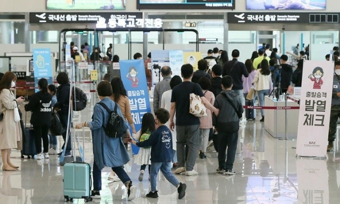 जेजू आंतरराष्ट्रीय विमानतळ, दक्षिण कोरिया, मे 2020 मधील प्रवासी. रॉयटर्सचा फोटो