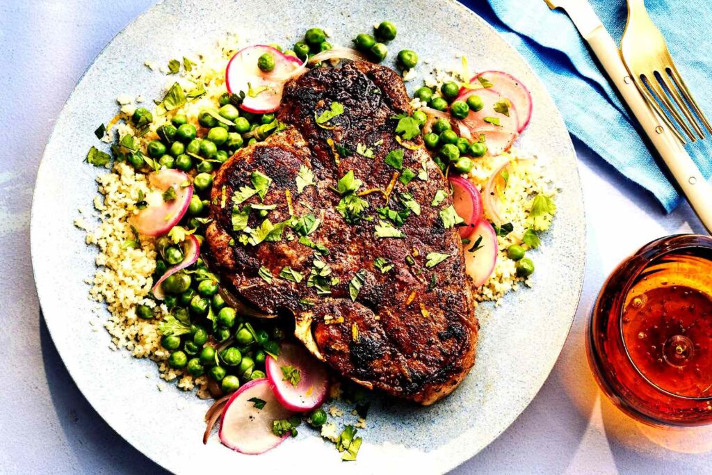 मटार, मुळा आणि मिंटसह मसालेदार पोर्क चॉप्स रेसिपी