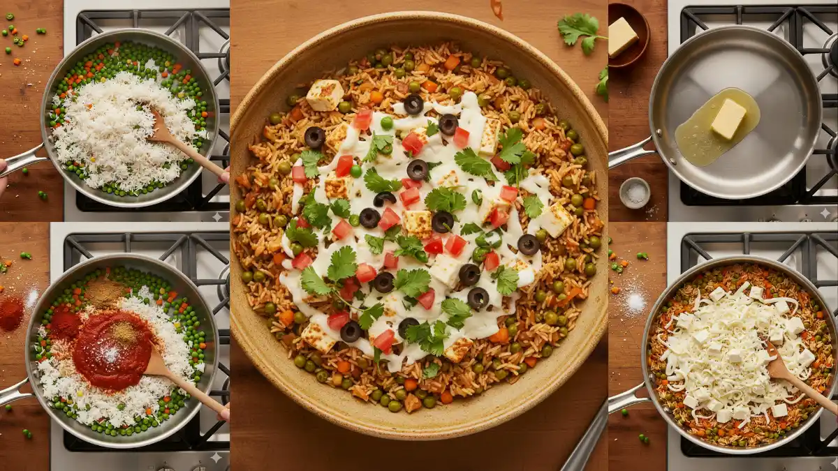 आता चिरलेला पनीर किंवा मोझरेला चीज घाला. 2-3 मिनिटे मंद आचेवर शिजवा जेणेकरून चीज थोडे वितळेल आणि भातामध्ये मिसळेल. चीज वितळल्याने डिशला क्रीमयुक्त पोत मिळते आणि मुलांना ही चव आवडते.