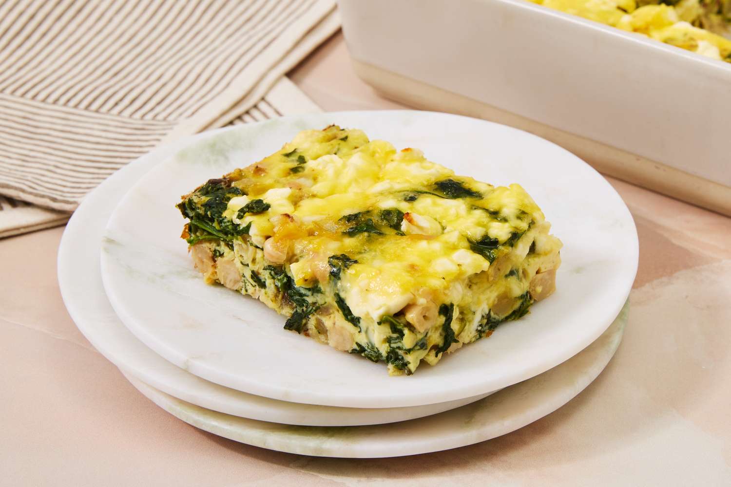 या पालक आणि पांढरे बीन अंडी फेटा सह बेक शनिवार व रविवार न्याहारी किंवा ब्रंच किंवा न्याहारी-रात्रीच्या जेवणासाठी योग्य आहे. हे प्रथिनेयुक्त अंडी, दूध, कॉटेज चीज आणि पांढरे सोयाबीनने भरलेले आहे, जे एक अद्भुत क्रीमी, किंचित नटी चाव्याव्दारे जोडते. हे डिश समृद्ध कस्टर्ड सारख्या पोतसह बेक करते, सर्व काही एकत्र ठेवणाऱ्या फुललेल्या कडा असलेल्या पृष्ठभागावर सोनेरी. पालक ताज्या मातीची भर घालते, तर लाल मिरची हलकीशी उब देते जी हलकेच रेंगाळते, फेटाच्या नितळ चुराला संतुलित करते. ही डिश मनापासून हलकी असली तरी नाश्त्यासाठी किंवा कुरकुरीत सॅलडसह ब्रंचसाठी पुरेशी हलकी आहे. पालक बेकिंग डिशमध्ये घालण्यापूर्वी ते कोरडे असल्याची खात्री करणे का महत्त्वाचे आहे यासह आमच्या तज्ञांच्या टिप्स वाचत रहा.
