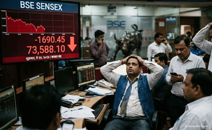 शेअर बाजारात सलग दोन दिवस वाढ पाहायला मिळाल्यानंतर शुक्रवारी मात्र शेअर बाजार दणाणून आपटला. शुक्रवारी शेअर बाजार जबरदस्त कोसळल्याने गुंतवणूकदारांना जबर फटका बसला आहे. मुंबई शेअर बाजाराचा निर्देशांक सेन्सेक्स 1690 अंकांनी घसरून 73,588 अंकांवर बंद झाला. तर राष्ट्रीय शेअर बाजाराचा निर्देशांक निफ्टी 486 अंकांनी घसरून 22,891 अंकांवर बंद झाला. 24 आणि 25 मार्चला शेअर बाजारात जबरदस्त रिकव्हरी झाली होती. यामुळे 3.5 टक्क्यांपर्यंत वाढ झाली होती. 27 मार्चला गुंतवणूकदारांनी नफेवसुली केल्याने बाजारात पडझड पाहायला मिळाली. शेअर बाजार घसरणीमागे अनेक कारणे आहेत. अमेरिकेचे राष्ट्राध्यक्ष डोनाल्ड ट्रम्प यांनी ऊर्जा केंद्रांवरील हल्ल्याला 6 एप्रिलपर्यंत स्थगिती दिली आहे, परंतु इराणकडून कोणतीही नरमाईची भूमिका दिसली नाही.