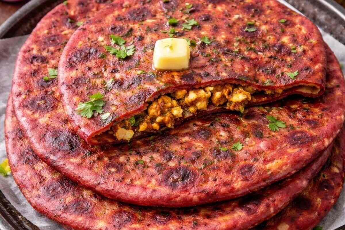 ज्या मुलांना भाज्या खायची नाहीत त्यांच्यासाठी ही सर्वोत्तम पद्धत आहे. गव्हाच्या पिठात कोरा बीट, जवन, हिरवी मिरची आणि मीठ मिसळा. एक सुंदर खोल गुलाबी रंगाचा मऊ पराठा थोडे तुपाने घासून बनवला जातो. आरोग्य आणि चव यांचा उत्तम मेळ.